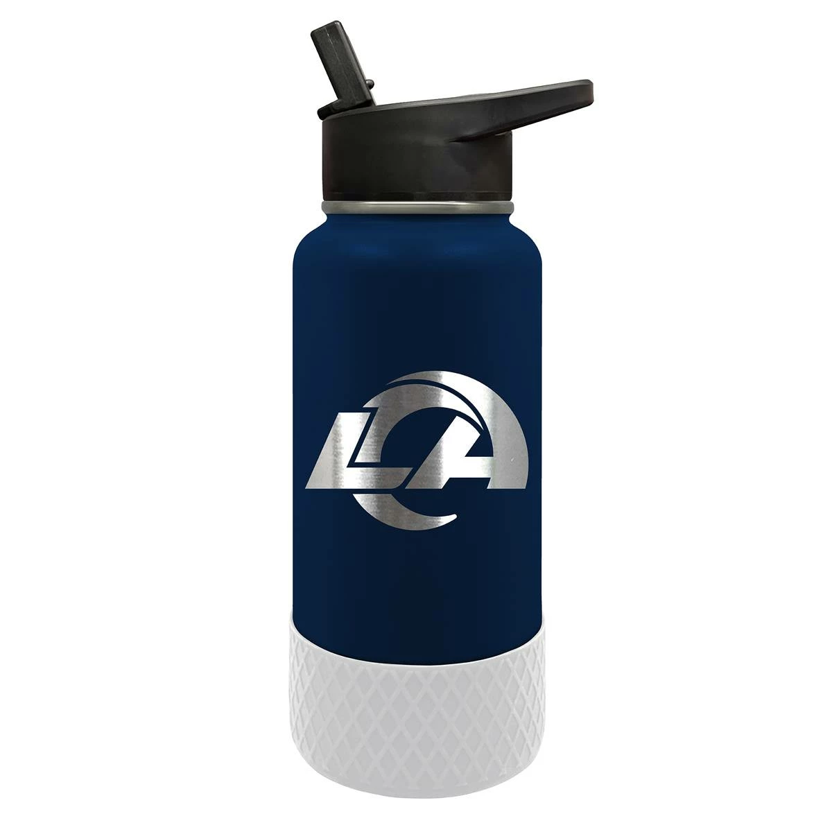 This Great American Products 32-ounce Las Angeles Rams water bottle comes in team colors so you can show your team pride wherever you go. It is made of vacuum insulated stainless steel with a coordinating silicone base and laser etched team graphics.