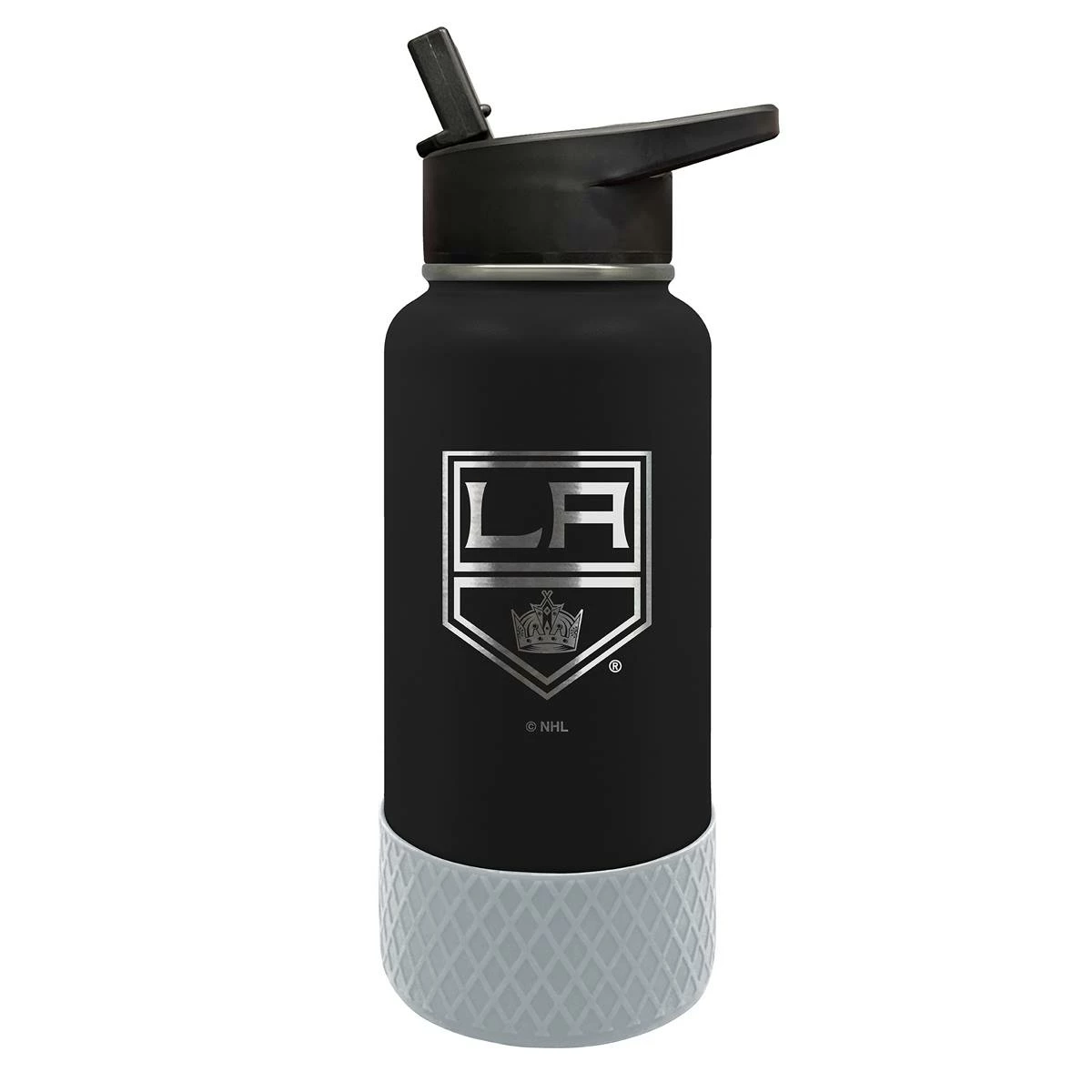 This Great American Products 32-ounce Los Angeles Kings water bottle comes in team colors so you can show your team pride wherever you go. It is made of vacuum insulated stainless steel with a coordinating silicone base and laser etched team graphics.