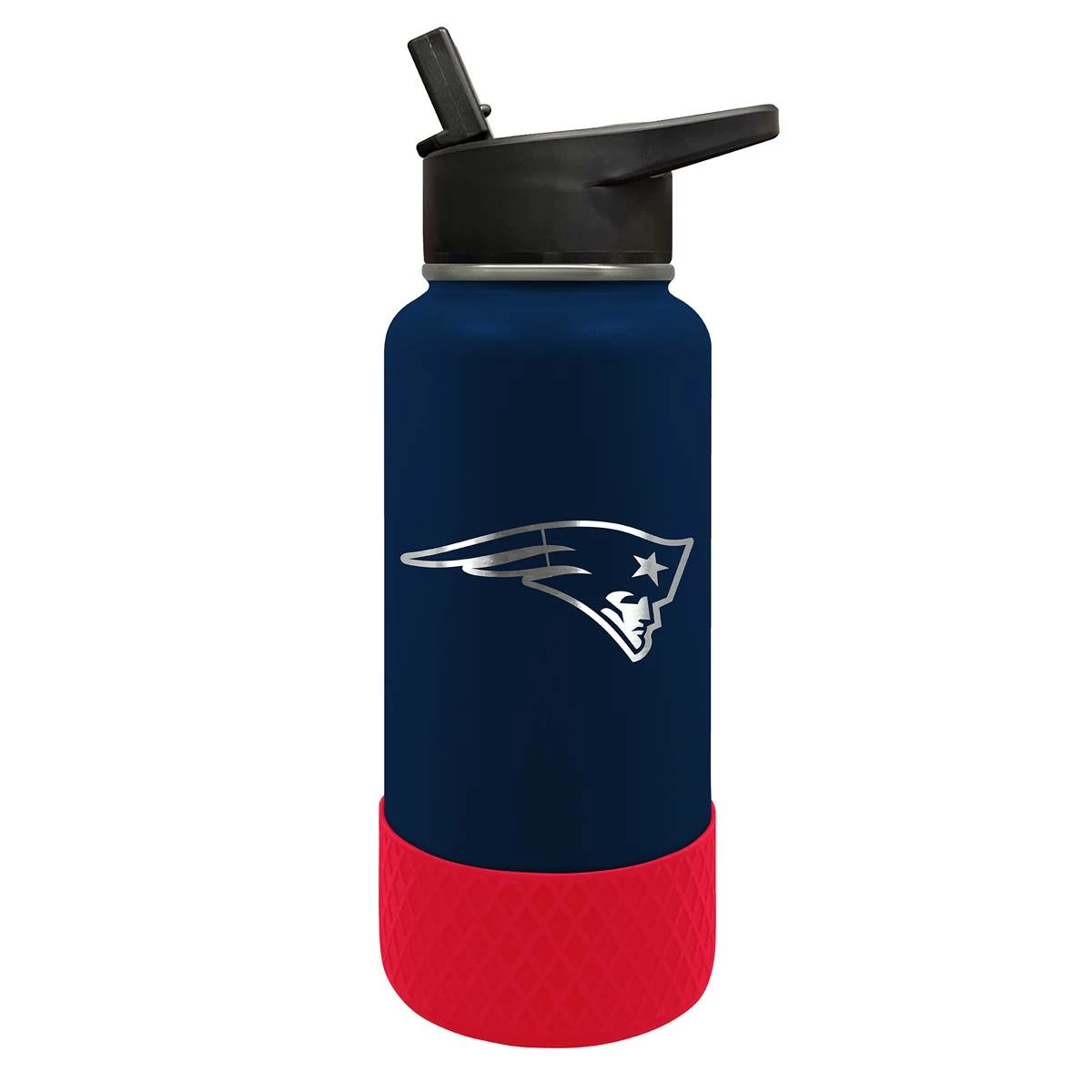 This Great American Products 32-ounce New England Patriots water bottle comes in team colors so you can show your team pride wherever you go. It is made of vacuum insulated stainless steel with a coordinating silicone base and laser etched team graphics.