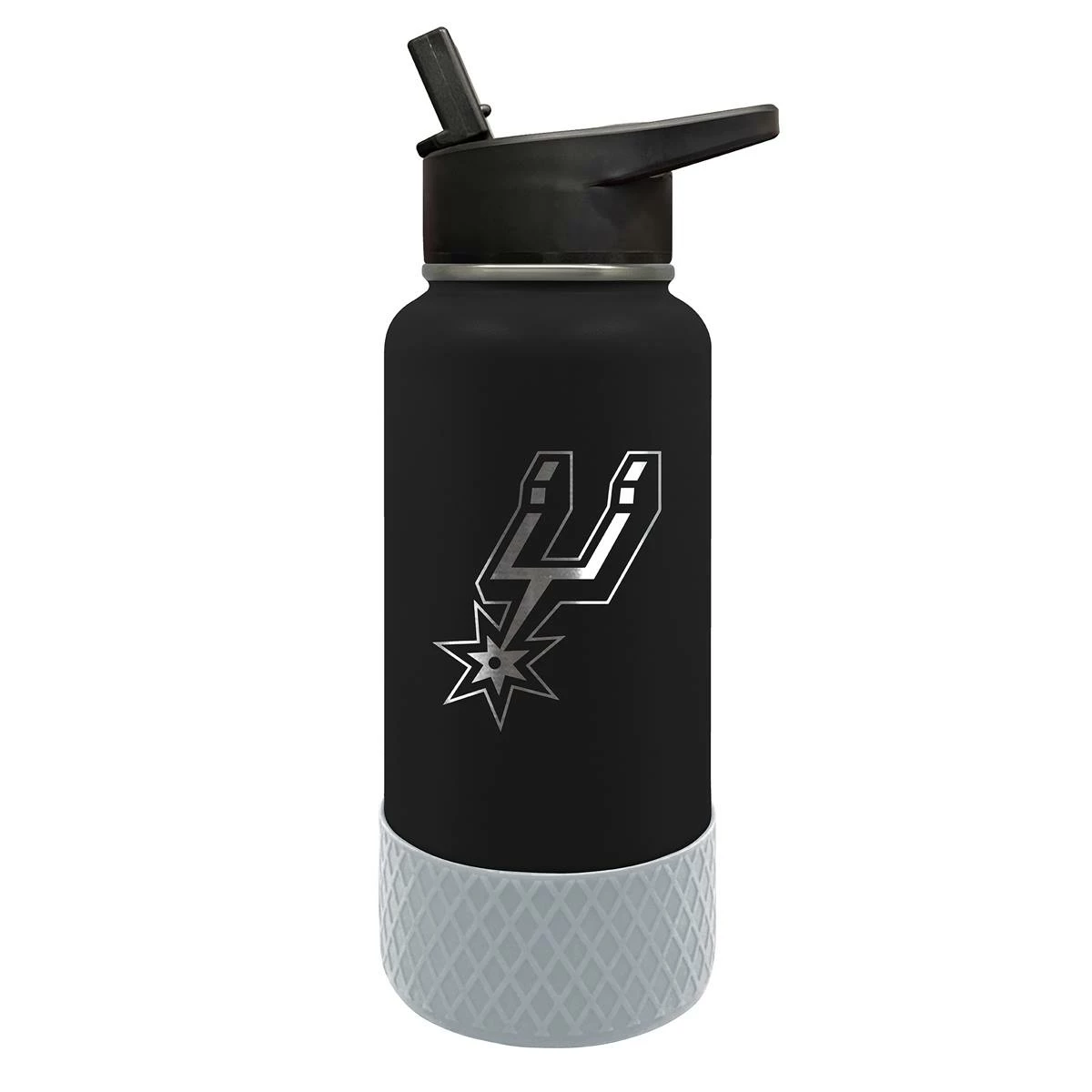 This Great American Products 32-ounce San Antonio Spurs water bottle comes in team colors so you can show your team pride wherever you go. It is made of vacuum insulated stainless steel with a coordinating silicone base and laser etched team graphics.
