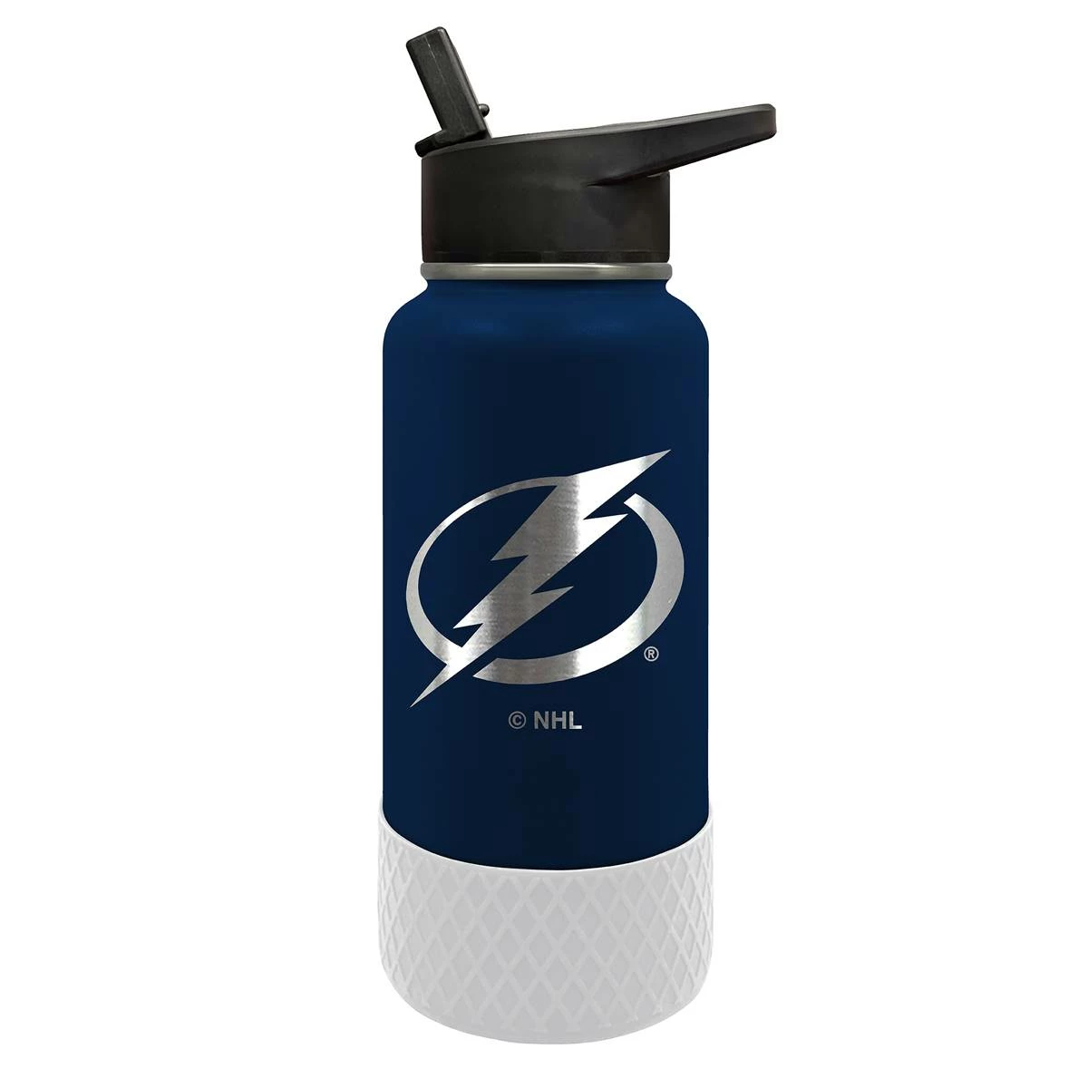 This Great American Products 32-ounce Tampa Bay Lightning water bottle comes in team colors so you can show your team pride wherever you go. It is made of vacuum insulated stainless steel with a coordinating silicone base and laser etched team graphics.